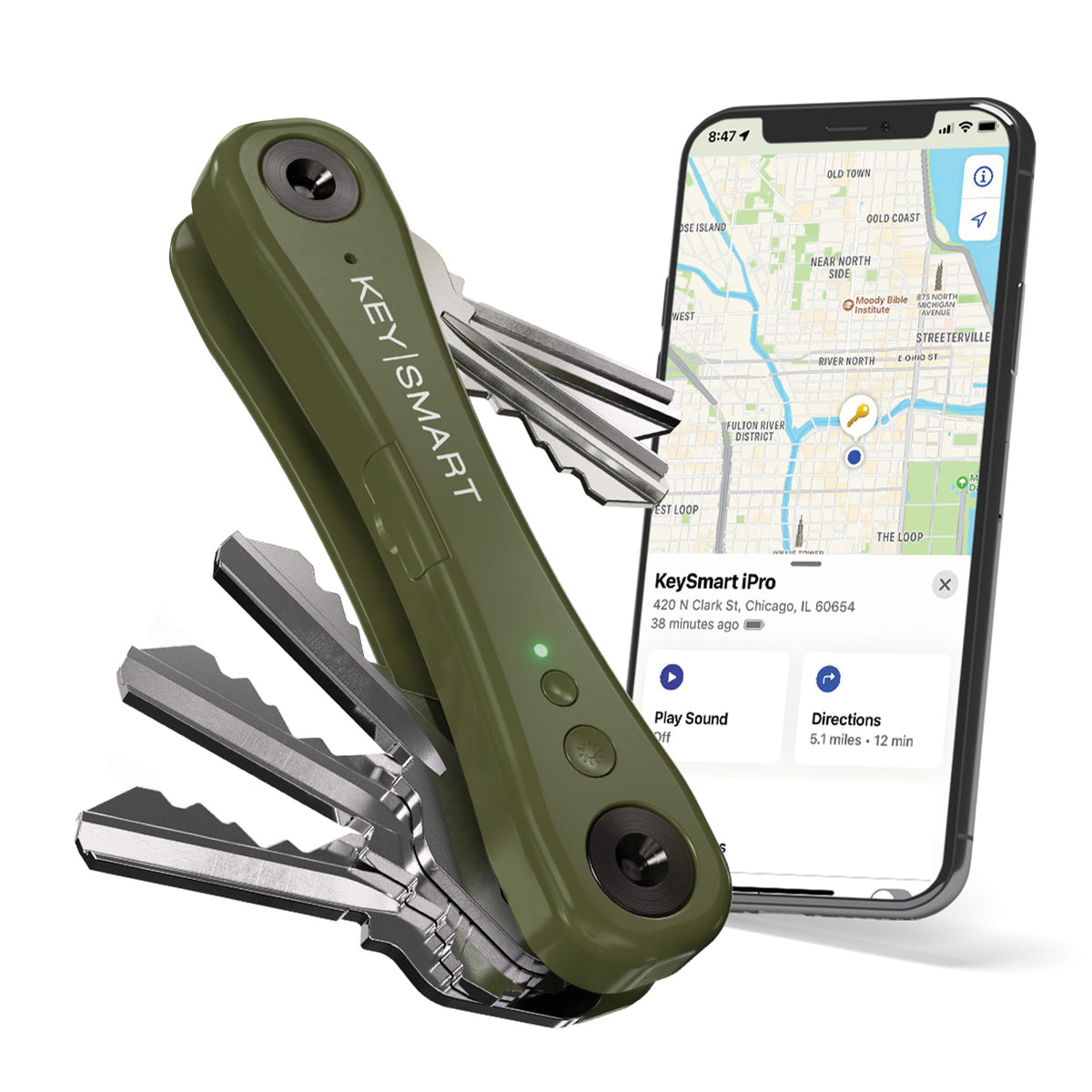 KeySmart iPro Tracker – Timber Green (works with iPhone)