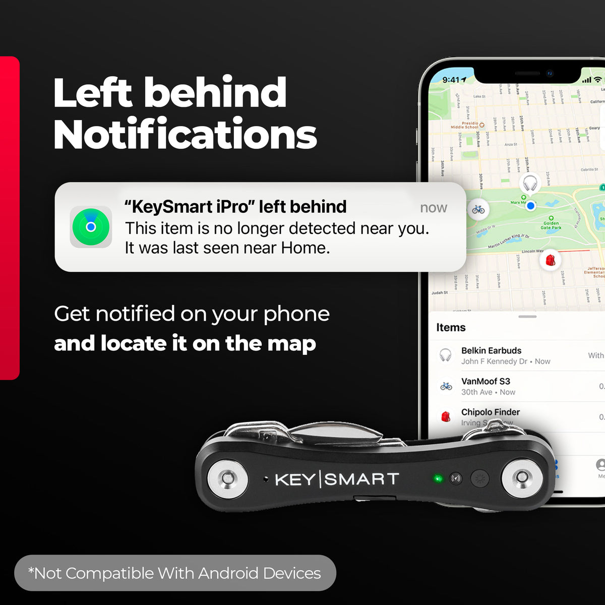 NEVER LOSE YOUR KEYS AGAIN WITH THE KEYSMART IPRO! This smart key organizer allows you to both organize your keys and helps you find them when they are lost! With built-in Apple Find My, you can locate your keys instantly, plus it doubles as a flashlight and bottle opener. It’s the ultimate everyday-carry tool for people who want security, convenience, and multifunctional design. Only works with Apple Devices / Not Compatible with Android.